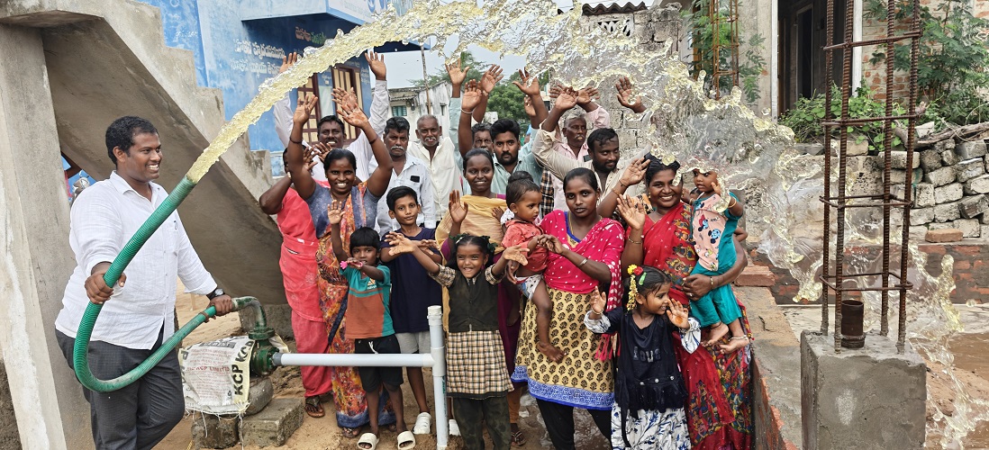 Community and Children at Community Water System site (RO plant (construction in progress), Gavinivaripalem